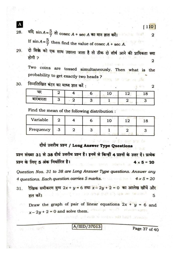 10th Math Subjective viral question paper : बिहार बोर्ड के कक्षा 10वीं का वार्षिक परीक्षा का आयोजन 17 फरवरी से किया जाना है। जिसमे दुसरे दिन गणित के परीक्षा का आयोजन किया जाना है। बोर्ड के द्वारा परीक्षा दो पालियो में आयोजित किया गया है। आज का यह लेख बिहार बोर्ड में परीक्षा छत्रों के लिए होने वाला है। क्यूंकि आज के इस लेख में गणित परीक्षा के लिए बहुत ही महत्वपूर्ण प्रश्न का संग्रह लेकर आये हुए है। 10th Math Subjective viral question paper,