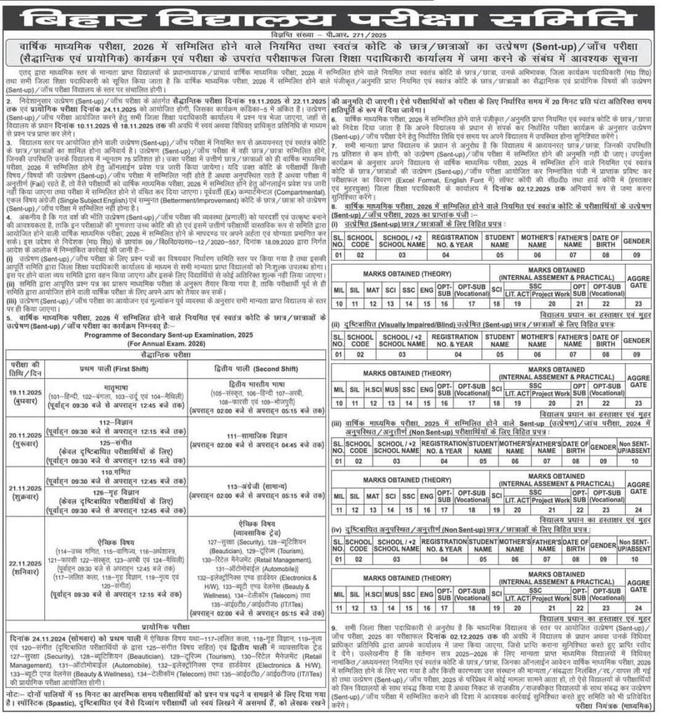 Bihar Board Class 10th Sentup Exam Routine 2025: कक्षा 10वीं सेंटअप परीक्षा का रूटीन डाउनलोड करें