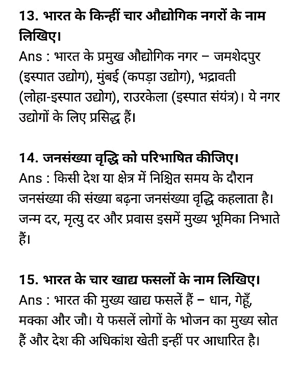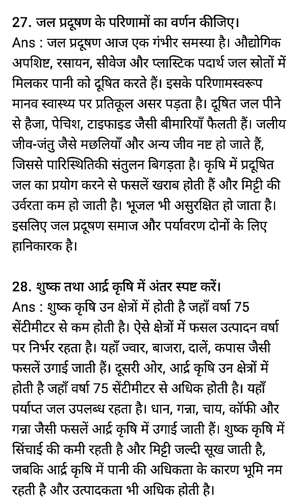 Bihar Board Class 12th Geography September Half Yearly Exam Subjective Answer Key Download Active Link 2025