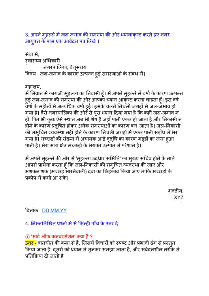 Bihar Board 12th Hindi Half Yearly Examination 2025