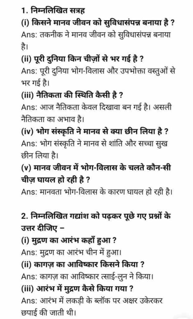 Bihar Board Class 9th Hindi September Half Yearly Exam 2025 Question Paper Answer Key Download Active Link